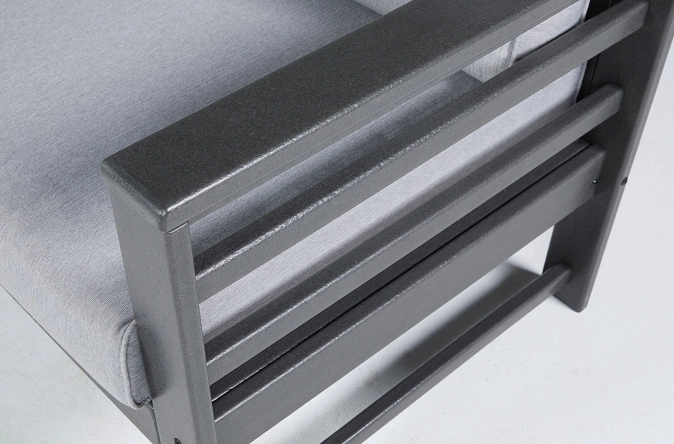 - OverviewIndulgently comfortable furniture shouldn’t be limited to inside spaces. Create your own outdoor oasis with this Amora cushioned lounge chair by Signature Design. A study in form and function, the trend-right charcoal gray frame is crafted from MEGA TUFF HDPE material for durability and weather resistance. Cushions wrapped in high-performing Nuvella fabric are comfortable and carefree.