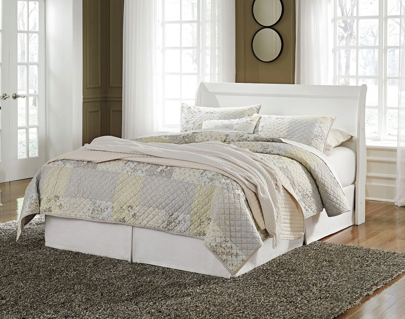 - OverviewTraditional in design and modest in scale, the elegant Anarasia Bedroom Collection by Signature Design takes its design inspiration from the classic Louis Philippe styling. The group features replicated white paint, shapely top mouldings on the case pieces and antiqued pewter color metal hardware complementing the Louis style. Bolt-on metal bed frame is included.