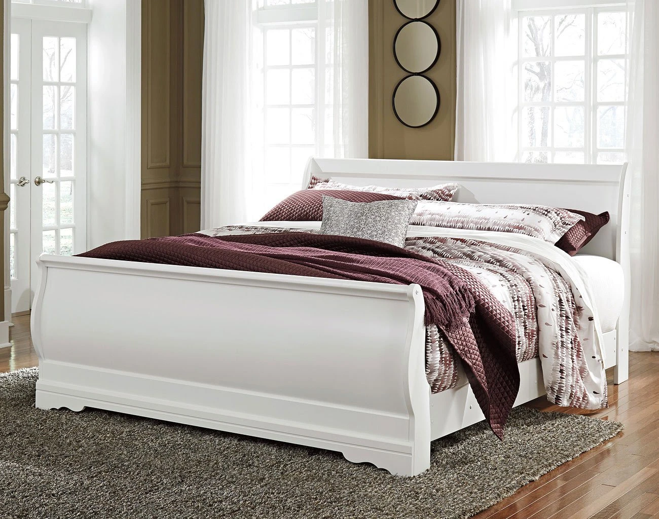 - OverviewTraditional in design and modest in scale, the elegant Anarasia Bedroom Collection by Signature Design takes its design inspiration from the classic Louis Philippe styling. The group features replicated white paint, shapely top mouldings on the case pieces, antiqued pewter color metal hardware and curvaceous footboard panel, caped with an elegant sleigh rail.