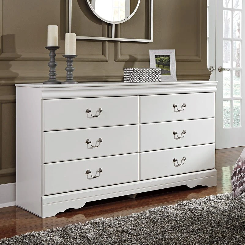 - OverviewTraditional in design and modest in scale, the elegant Anarasia Youth Bedroom Set by Signature Design takes its design inspiration from the classic Louis Philippe styling. The group features replicated white paint, shapely top mouldings on the case pieces and antiqued pewter color metal hardware complementing the Louis style. Bolt-on metal bed frame is included.