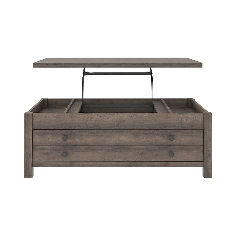 - OverviewRaise the bar on modern farmhouse design with this versatile Arlenbry lift-top coffee table by Signature Design. Sporting a handsome weathered oak effect and cross buck design, this table’s handy spring-loaded mechanism brings the tabletop closer to you. This versatile table makes it easier than ever to eat, work or play from the comfort of your sofa.