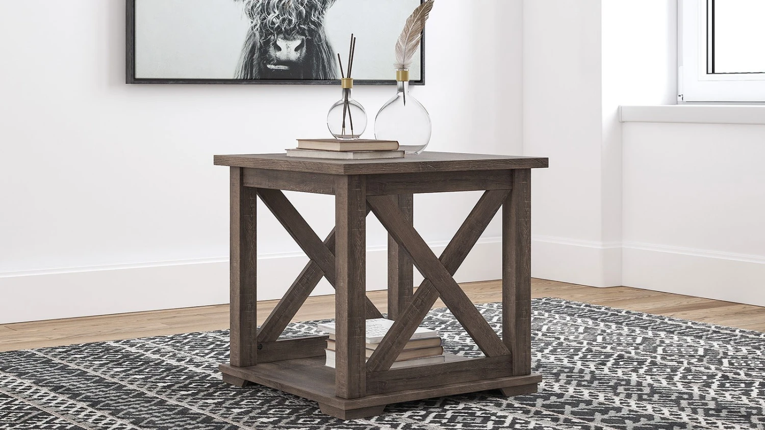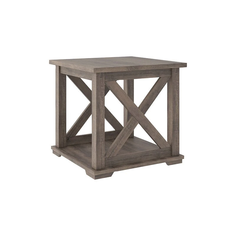 Choice of drawer end table or an open shelf end table with cross-buck design