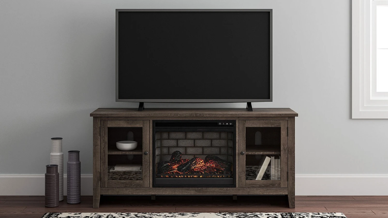 - Optional Items1 x Arlenbry Medium TV Stand 1 x Arlenbry Large TV Stand 1 x Arlenbry Large TV Stand w/ Glass and Stone Fireplace 1 x Arlenbry Large TV Stand w/ Infrared Fireplace