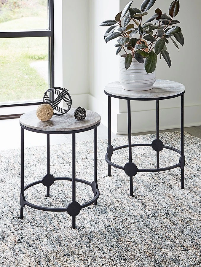 - OverviewMake a dynamic statement while providing a convenient spot for a glass, book or plant. Pairing natural marble and metal legs, this Beashaw Accent Table Set by Signature Design adds a compelling piece of decor to your home.