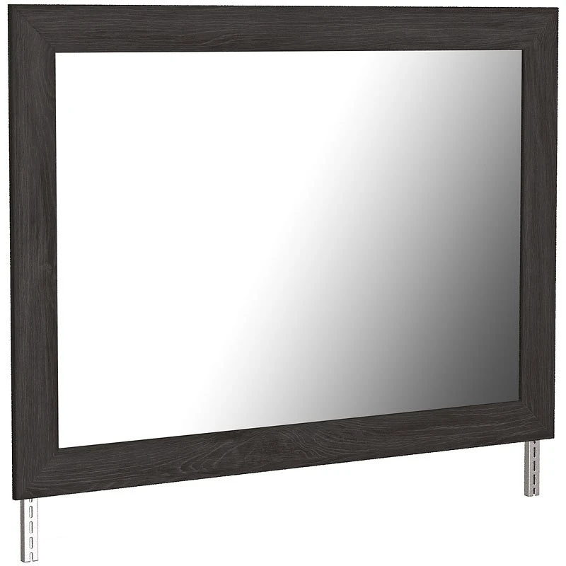 - OverviewWith its clean-lined look and modern attitude, this Belachime mirror by Signature Design is a fresh style awakening. Warm charcoal hue over replicated oak grain easily complements other furniture finishes.
