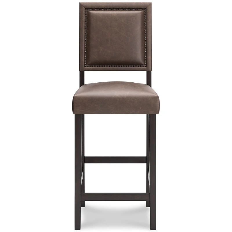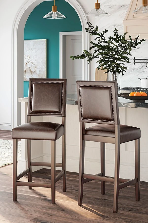 - OverviewCharmingly chic, this Benmara bar height stool by Signature Design brings a casually cool touch to your dining area. Sleek faux leather upholstery has a delightfully vintage appeal. Metallic nailhead trim rounds out the look.
