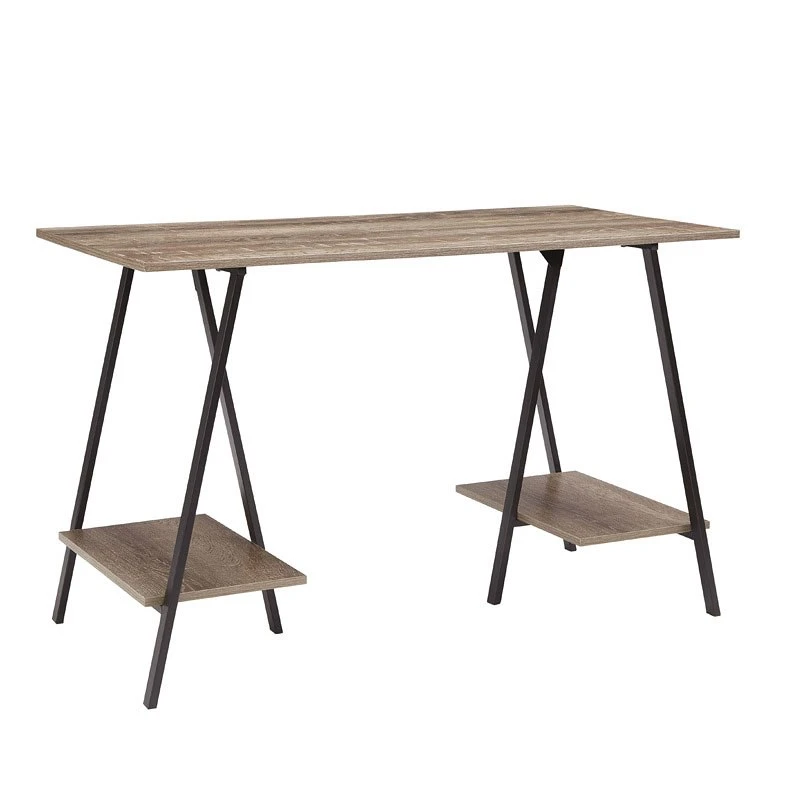 - OverviewA scaled-down take on the simply striking sawhorse table, the Bertmond desk by Signature Design works beautifully for those short on space. Welded metal base combined with slabs of lightly finished wood make a brilliant statement.