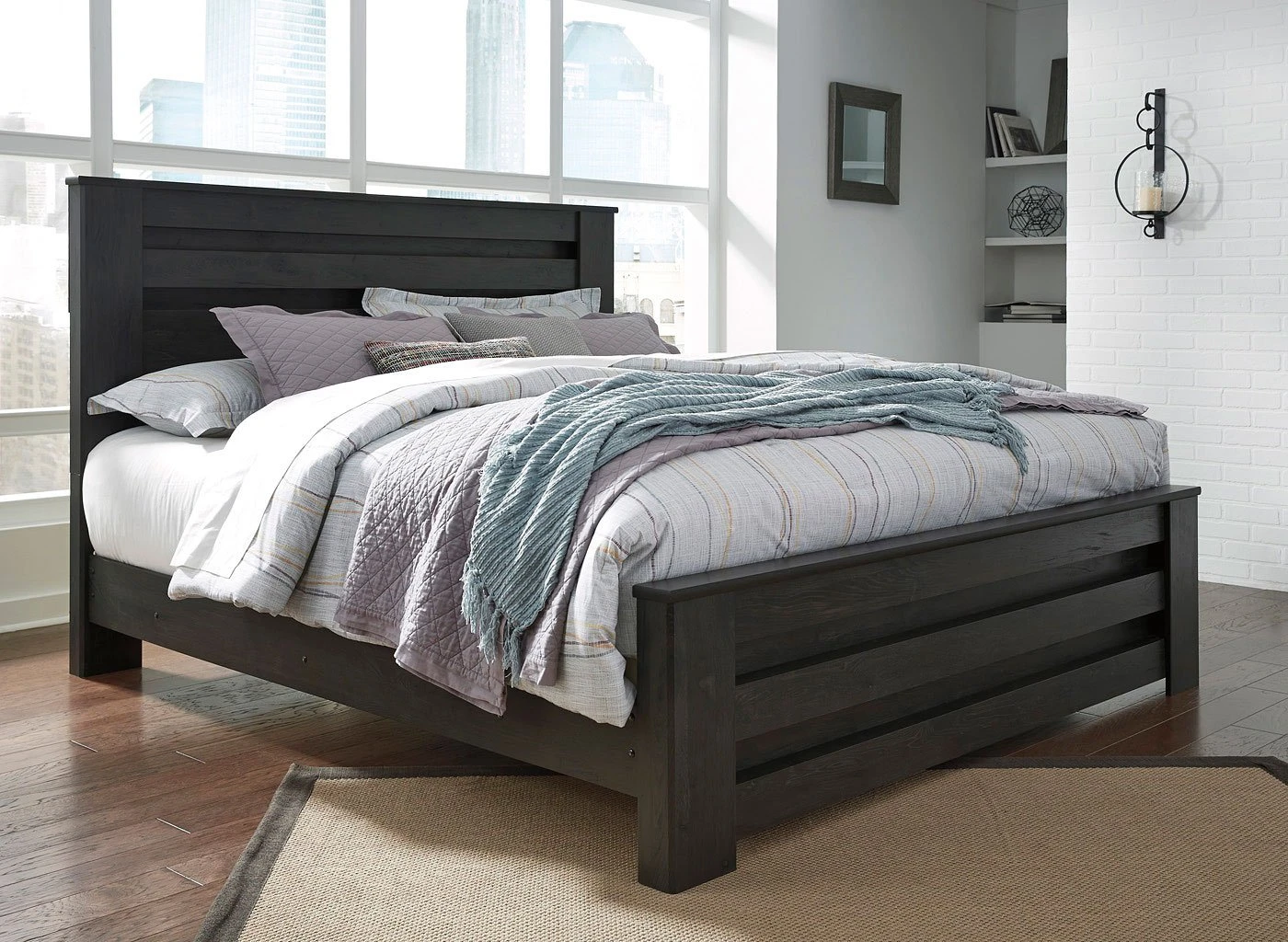 - OverviewPriced to entice and styled to impress, the Brinxton Bedroom Collection by Signature Design is urban sophistication with a decidedly relaxed air. It’s got the crisp, clean lines of a contemporary piece, but with an earthy element. Replicated oak grain effect gives the chic charcoal finish warmth and character.