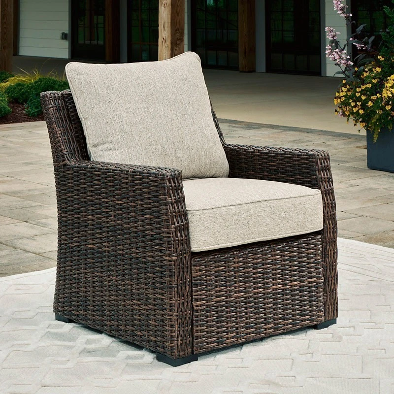 Relax. Refresh. Refine your outdoor oasis. This Brook Ranch Outdoor Lounge Chair by Signature Design masters high style with beautiful simplicity. High-performance fabric, warmly neutral hues and all-weather durability invite everyday use. From getting sun-kissed in the summer to chilling with cocoa in the winter, its cushioned comfort makes outdoor living all the more enticing.