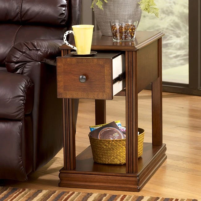 - OverviewWhether it’s snuggled up next to your favorite recliner or resting next to the comfort of your sofa, the Chairside End table collection by Signature Design by Ashley Furniture offers ample storage space with a variety of styles and finishes that are sure to flawlessly accent the décor of your living environment.