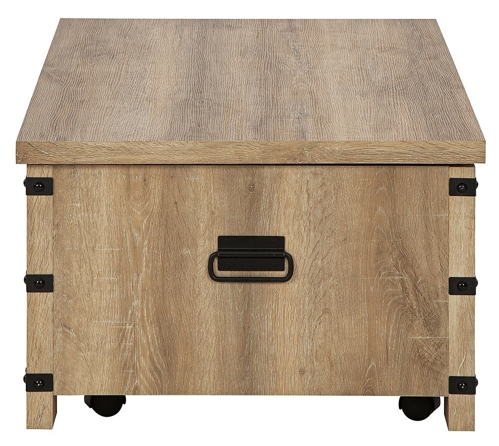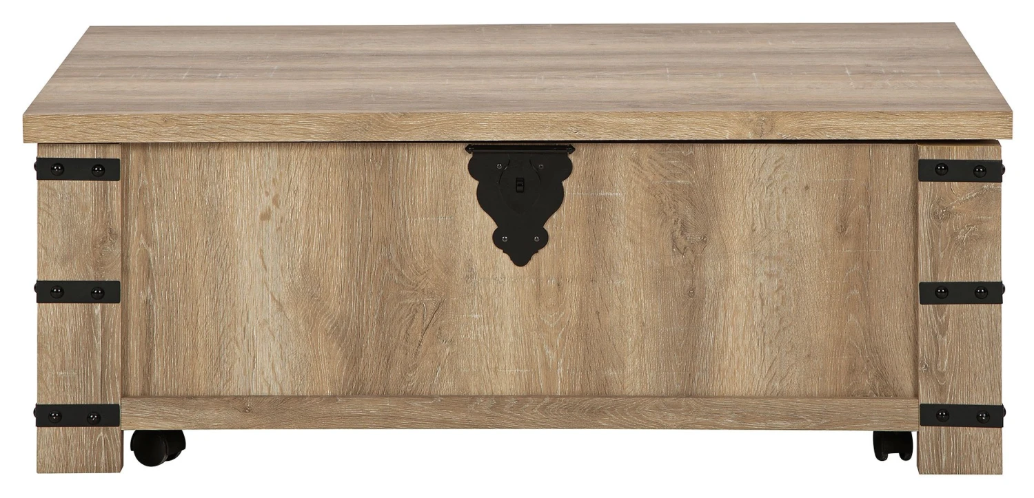 - OverviewThe Calaboro Cocktail Table by Signature Design reinvents yesterday’s style with casually modern flair. Its replicated natural oak grain is warm and inviting, while metal accents deliver a rustic, mixed-material edge. This laid-back luxe piece is further elevated by the lift-top design, providing surface space for daytime work or movie-night snacks.