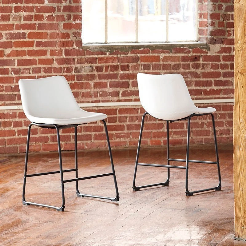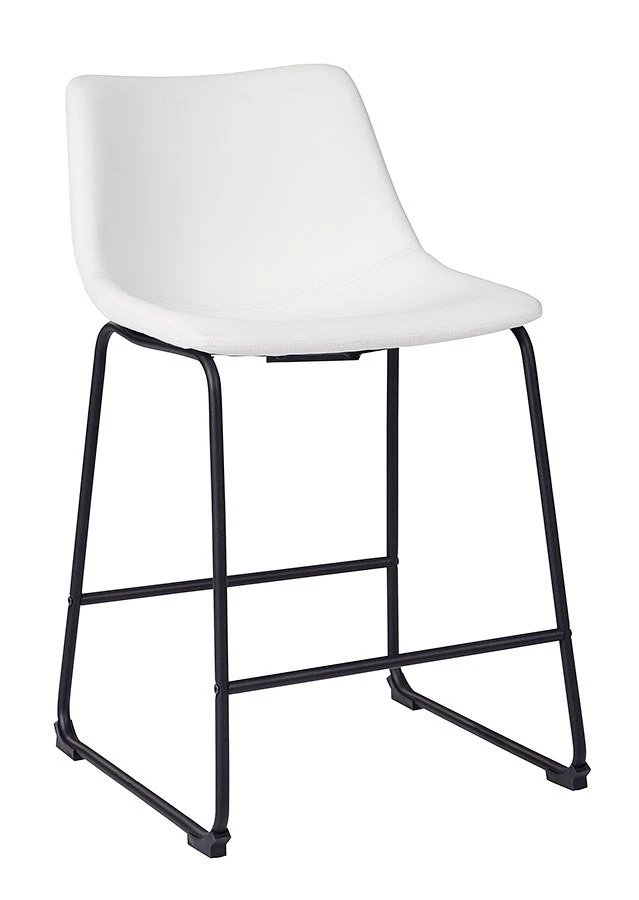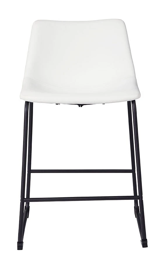- OverviewWith its distinctive contoured bucket seat and tubular metal base, this Centiar bar stool by Signature Design serves up a fresh twist on mid-century inspired style. Contrasting white faux leather upholstery adds to the aesthetic. What a timeless look for eat-in kitchens and casually cool dining rooms.