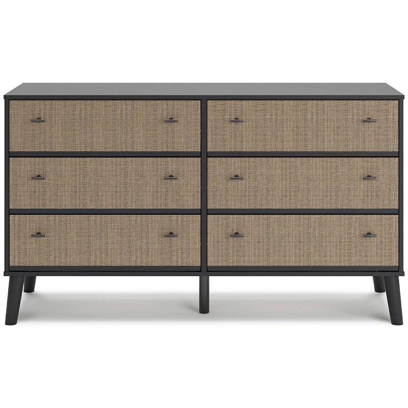 - OverviewPut a retro spin on current trends with this Charlang Bedroom Collection by Signature Design. Its mixed-material look of matte black and replicated beige cane brings a casually cool feel to your bedroom. Simple, sleek hardware and splay legs round out the urban meets mid-century vibe.