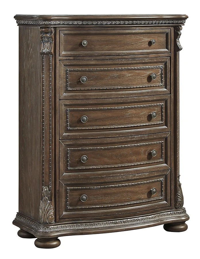 - OverviewWhen only the best will do. The Charmond chest of drawers’ uniquely luxurious interpretation of traditional style says it all. Beautifully flowing elements include serpentine curving front, swirl-patterned inlay on the top and scroll accents adorning the corners. Exquisitely crafted and treated to a multi-hued finish, it’s clearly a labor of love.