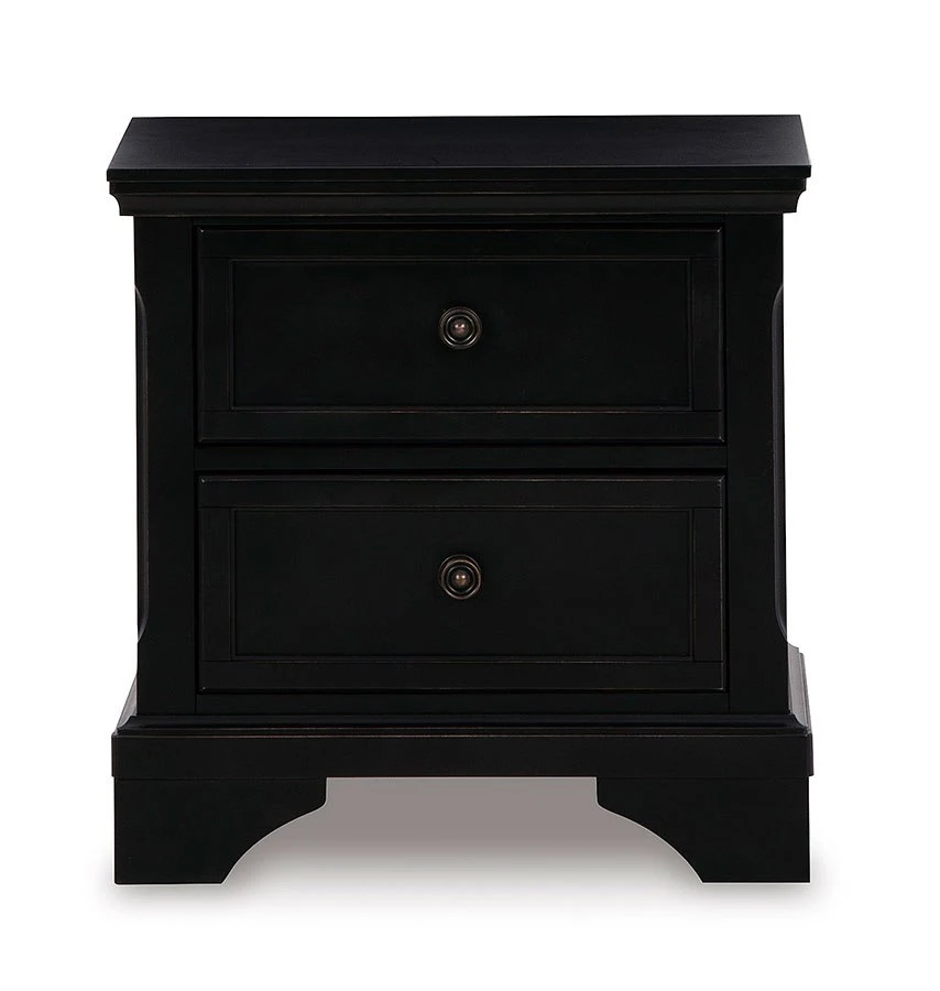 - OverviewThis Chylanta Nightstand by Signature Design has a timeless look and traditional design that dresses up your bedside area. Its black finish adds a casual aesthetic, while round metal knobs in a dark bronze tone create a beautiful focal point on two stylishly subtle drawer fronts.