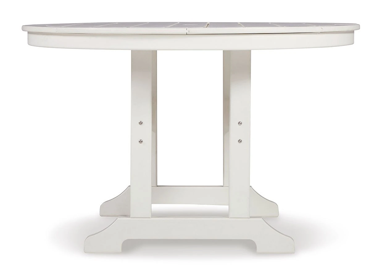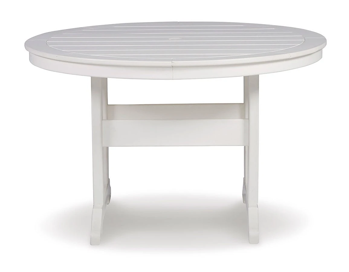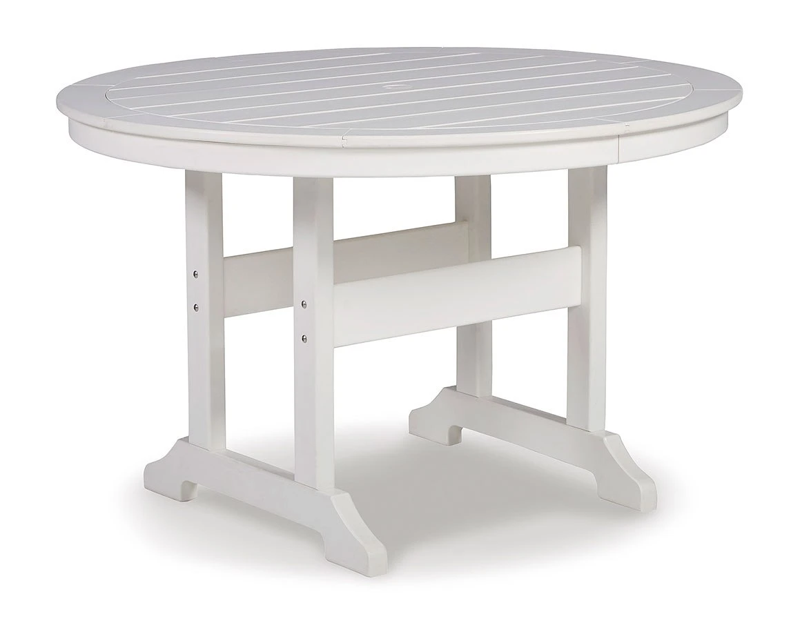 - OverviewSet the table for a backyard or poolside gathering, and serve up an extra helping of good times. Designed for easy-breezy living, this cool white Crescent Luxe Outdoor Dining Table by Signature Design is made of extremely durable MEGA TUFF HDPE material to withstand harsh weather elements. Stainless steel hardware and aluminum supports provide extra strength.