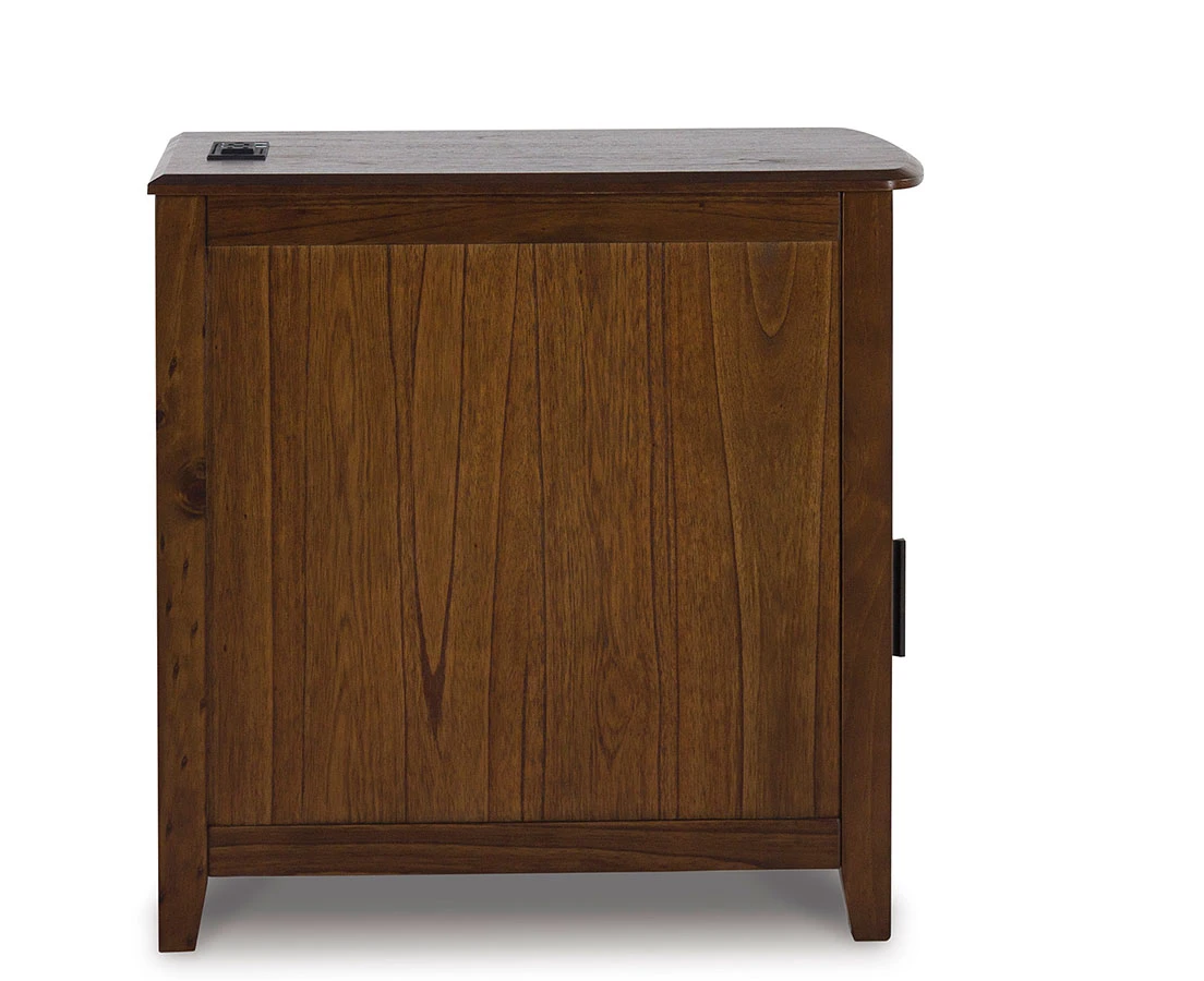 - OverviewThis Devonsted Chairside End Table by Signature Design is a simply stunning exhibition of sofa-side function. Your daily routines are upgraded with USB charging and a handy pull-out tray to keep remotes and beverages close at hand. Seeking extra storage? This table is ready to accommodate. Intentionally made for casual lifestyles, it’s an instant everyday essential.