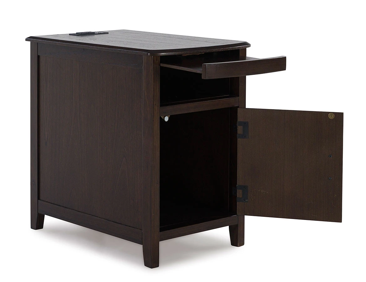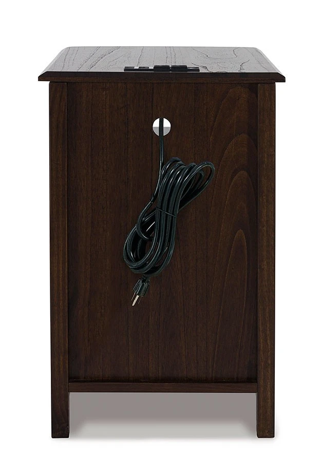 - OverviewThis Devonsted Chairside End Table by Signature Design is a simply stunning exhibition of sofa-side function. Your daily routines are upgraded with USB charging and a handy pull-out tray to keep remotes and beverages close at hand. Seeking extra storage? This table is ready to accommodate. Intentionally made for casual lifestyles, it’s an instant everyday essential.