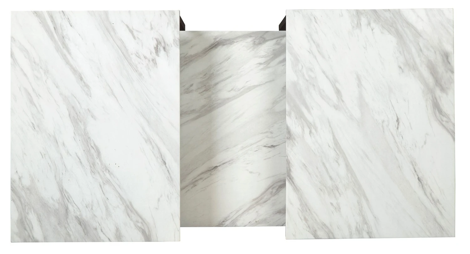- OverviewDiscover the epitome of urban elegance with this Donnesta table set by Signature Design. Made for city living, this set slides together when space is at a premium and apart again when company comes. The faux Carrara marble adds a chic, sophisticated look to this very minimalist small space solution.
