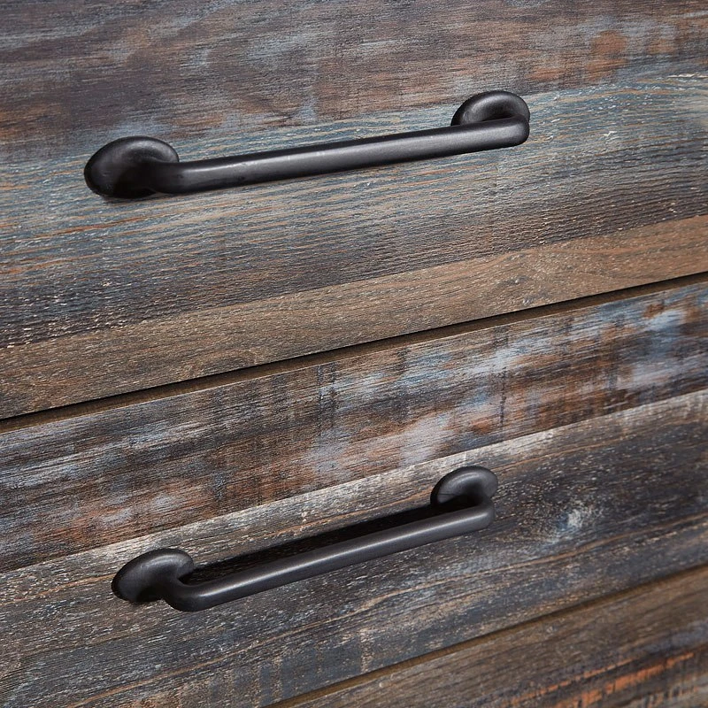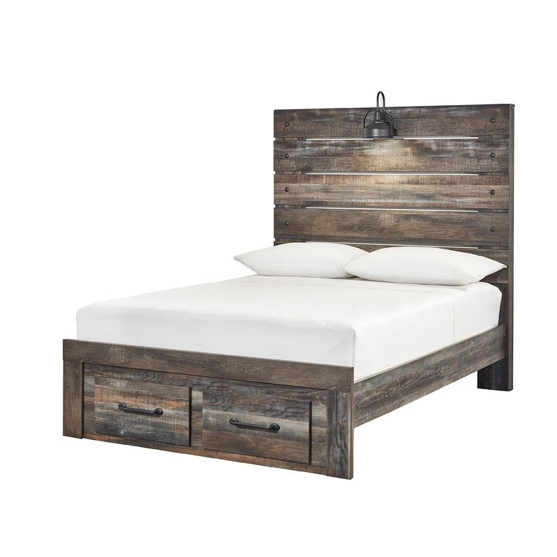 - OverviewWhen merged in just the right way, rustic and industrial styles can make one happy marriage. Case in point: this Drystan Bedroom Collection by Signature Design. A refined take on barn board beauty, its complex, replicated wood grain showcases hints of burnt orange and teal tones for a sense of weatherworn authenticity.