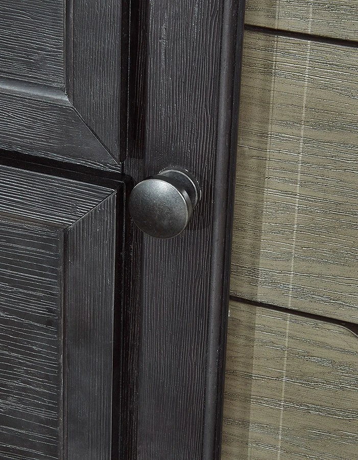Two-tone finish (brushed black and dusty grayish brown wood tone)