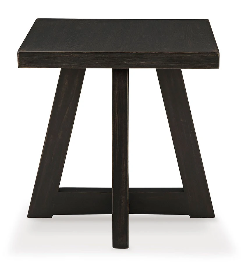 - OverviewThis Galliden End Table by Signature Design brings a rustic vibe to urban contemporary design. It’s a modern approach to natural beauty, with an aged black finish defining a unique geometric design. And the stunning simplicity of its color palette allows you to seamlessly coordinate this table with your existing decor.