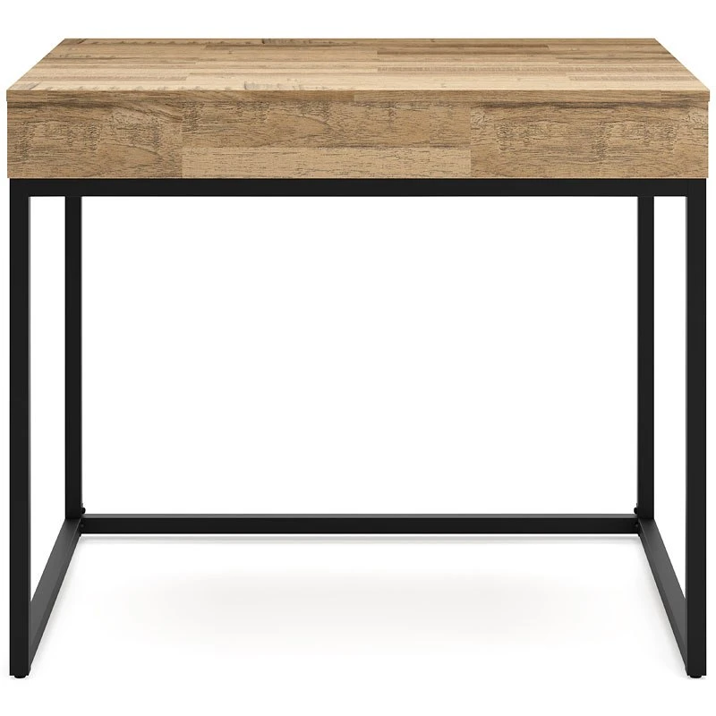 - OverviewMake a bold statement in a compact footprint with this high-style Gerdanet lift-top desk by Signature Design. The striking contrast of its natural-hued, butcher block patterned top and sleek black metal frame is so dramatic. Crafted for form and function, the lift top allows you to work both comfortably and in chic style.