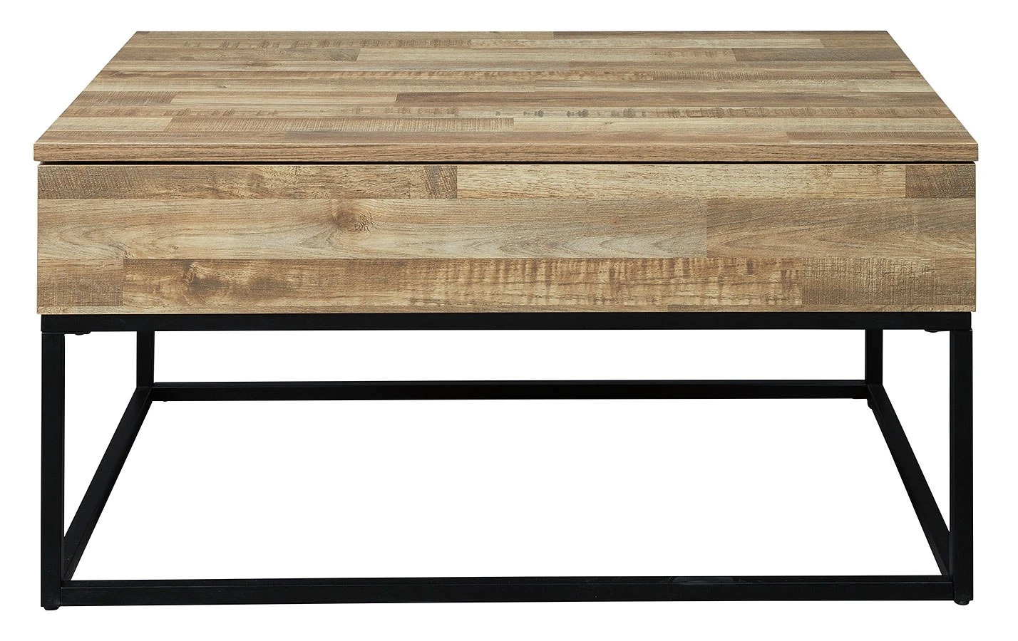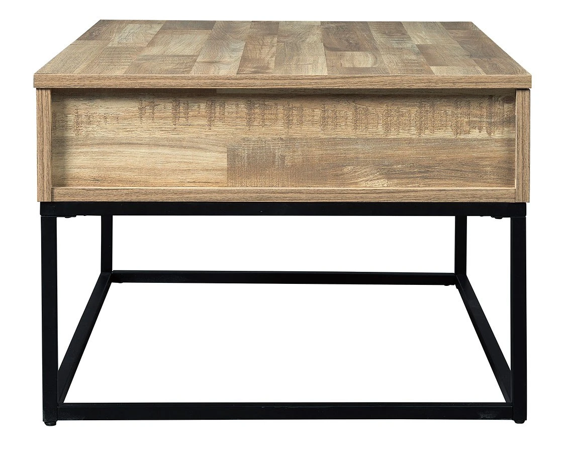 - OverviewThis cool Gerdanet cocktail table by Signature Design offers a fresh take on urban style with a casual lift-top design and replicated butcher block finish. The metal base elevates the table and provides open space to add a lightness to your room.