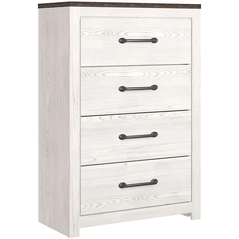 - OverviewCool, clean and casually modern. This collection’s wispy whitewash and gray finish sets the tone for your calming sanctuary. Large linear pulls add dimension and authenticity. Smooth-gliding drawers neatly accommodate your wardrobe needs.