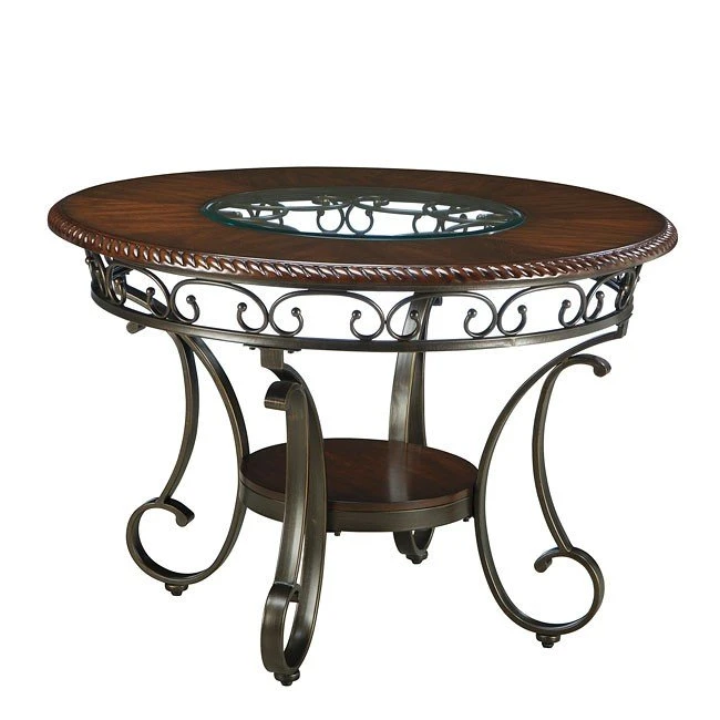 - OverviewWith the scrolling tubular metal bathed in a dark bronze color finish beautifully supporting the brown cherry finished table top adorned with a decorative rope twist edge profile, the Glambrey Dining Room Collection by Signature Design by Ashley Furniture flawlessly captures the true atmosphere of classic Old World design to enhance to look of any dining room.