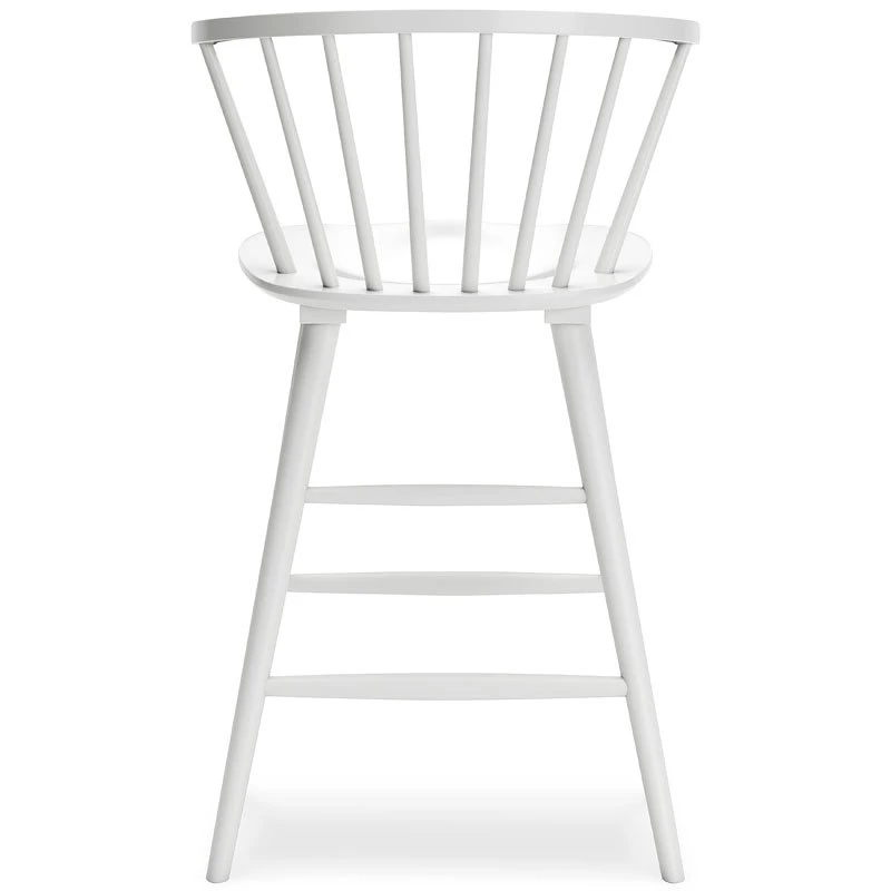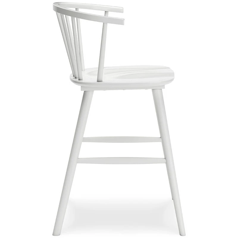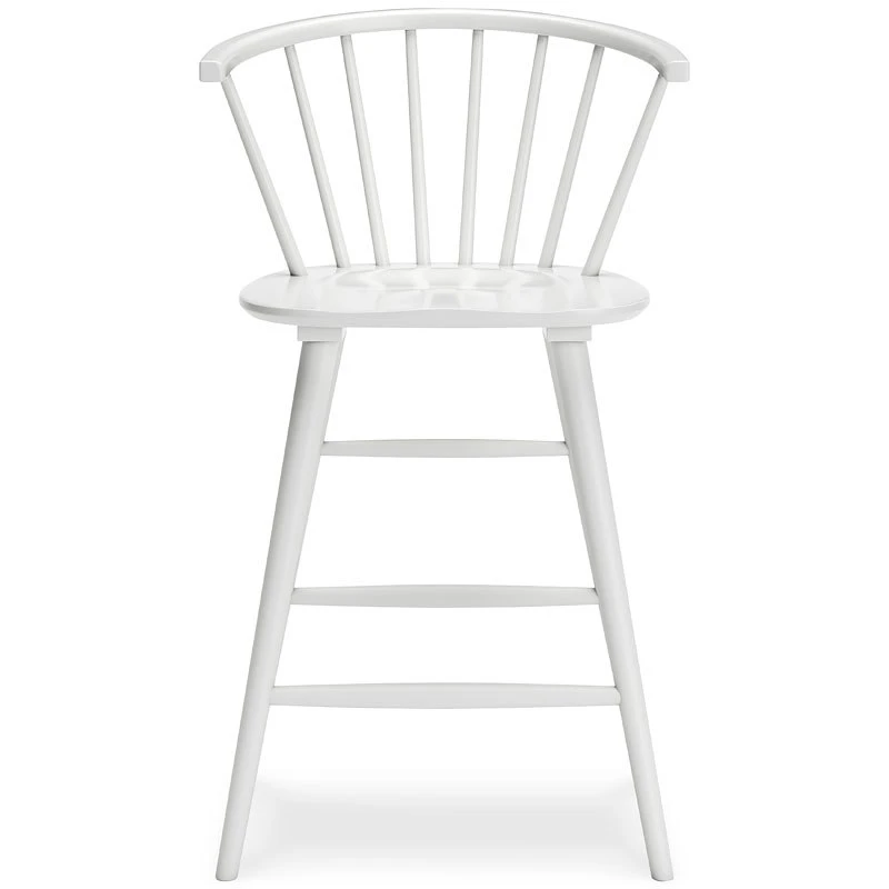 - OverviewBring light to your dining area with clean lines and a bright, white finish. This Grannen counter height stool by Signature Design sports a low spindle back with a contoured seat for beautiful simplicity. The functional piece marries minimalism with big style for a delightful combination.