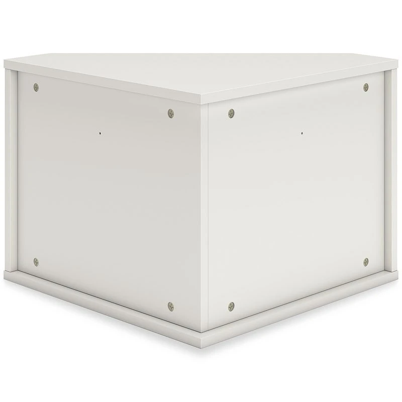 - OverviewClean-lined design takes center stage in this Grannen home office corner bookcase by Signature Design. Well-suited to small spaces, this bookcase leaves a small footprint as it seamlessly mounts onto corner walls. Two open shelves help store and display, while the crisp white finish suits a myriad of contemporary color palettes.