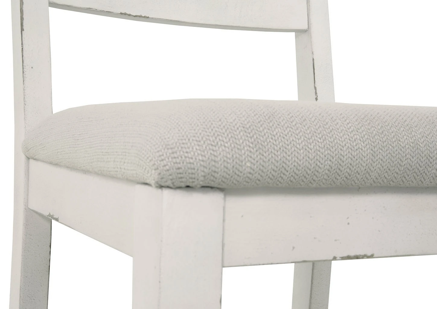 D754-01 chair has a broad rung ladder back design with light gray fabric cover or a stylish slip cover look with a linen like fabric
