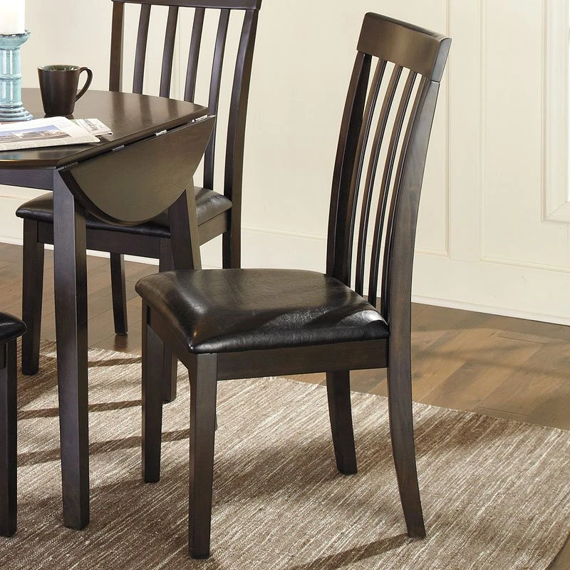 - OverviewThe Hammis Dining Room Collection by Signature Design is made with select birch veneer and hardwood solids in a transitional dark brown finish with gray undertones. The side chairs feature upholstered seating for supreme comfort and stylish dining.