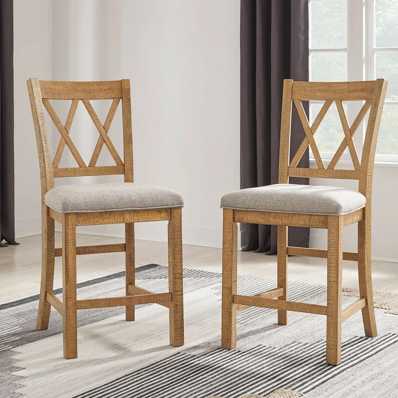 - OverviewThis Havonplane Counter Height Chair by Signature Design is a favorite choice for casual rustic interiors. Offering design-worthy seating, this bar stool is your answer for everyday living and impromptu guests. And the stool’s double X-back with textured upholstered seat? Deliciously versatile and comfortable.