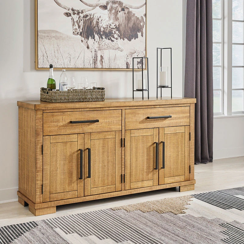 - OverviewThis Havonplane Server by Signature Design is a favorite for casual rustic interiors. Offering plenty of storage, it’s your answer for everyday living and impromptu entertaining. And the cabinets with adjustable shelves? Deliciously versatile and functional.