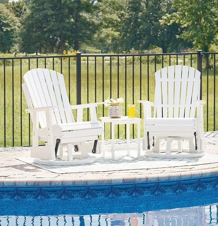 - OverviewDrift away from everyday worries and into outdoor bliss with this Hyland Wave Outdoor 3-Piece Seating Set by Signature Design. Dressed in a bright white, the Adirondack-inspired design has a fresh feel. It weathers sunny summer days and cozy winter nights with durable MEGA TUFF HDPE material. When it comes to form and function, the chair’s 360-degree swivel and rain-shedding slatted design simply go with the flow.