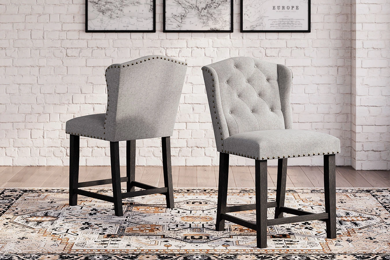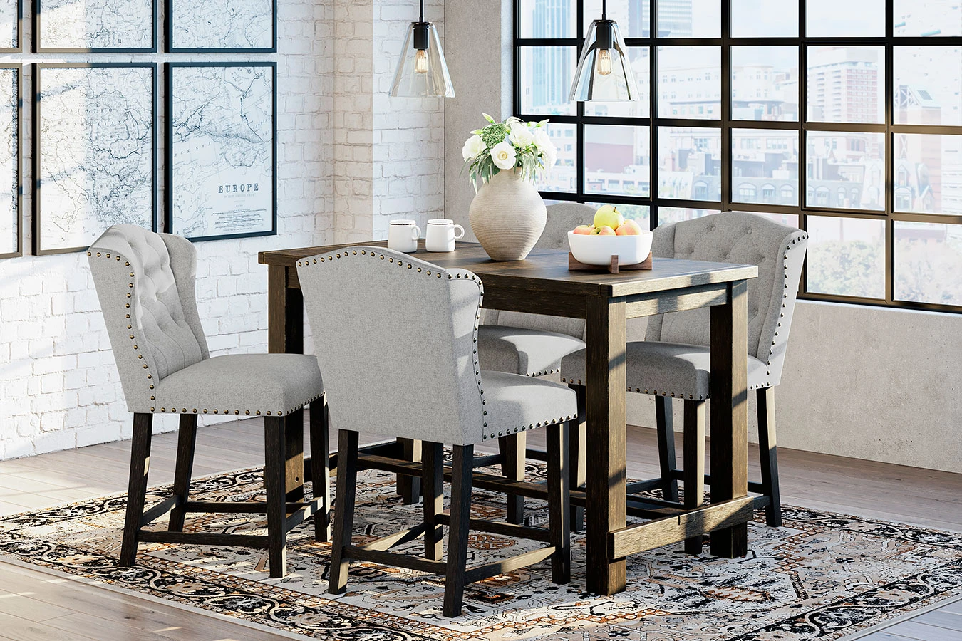 - Default Set Includes1 x Jeanette Counter Height Table 4 x Jeanette Linen Counter Height Chair