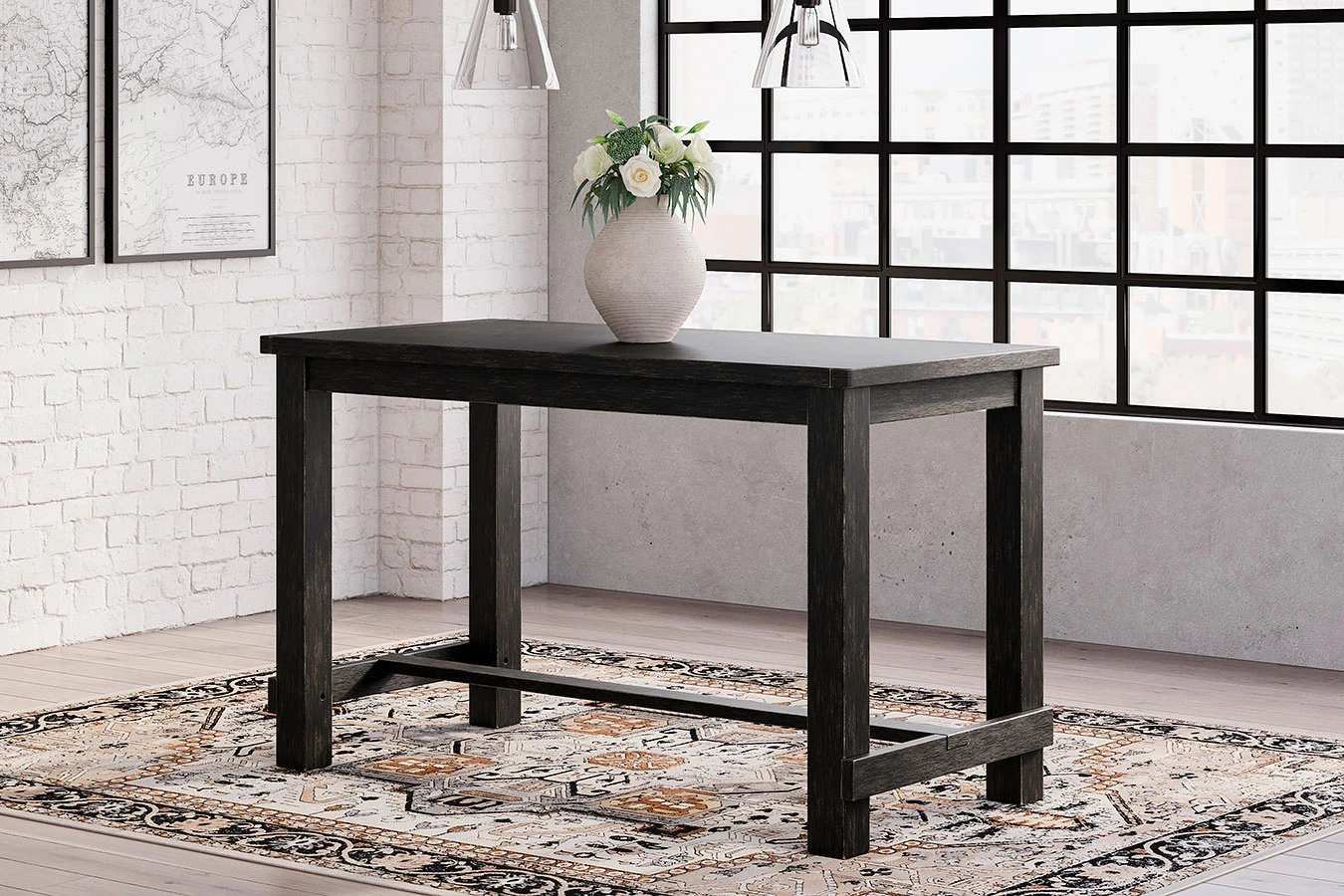 - OverviewWith its fashion-forward take on farmhouse styling, this Jeanette Counter Height Dining Room Set by Signature Design is a feast for the senses. A dry vintage black finish infuses the table with wonderfully weathered charm. Its clean-lined Parsons styling and natural marble top are timeless classic choices that work so well with different chair styles, should you decide to mix it up.
