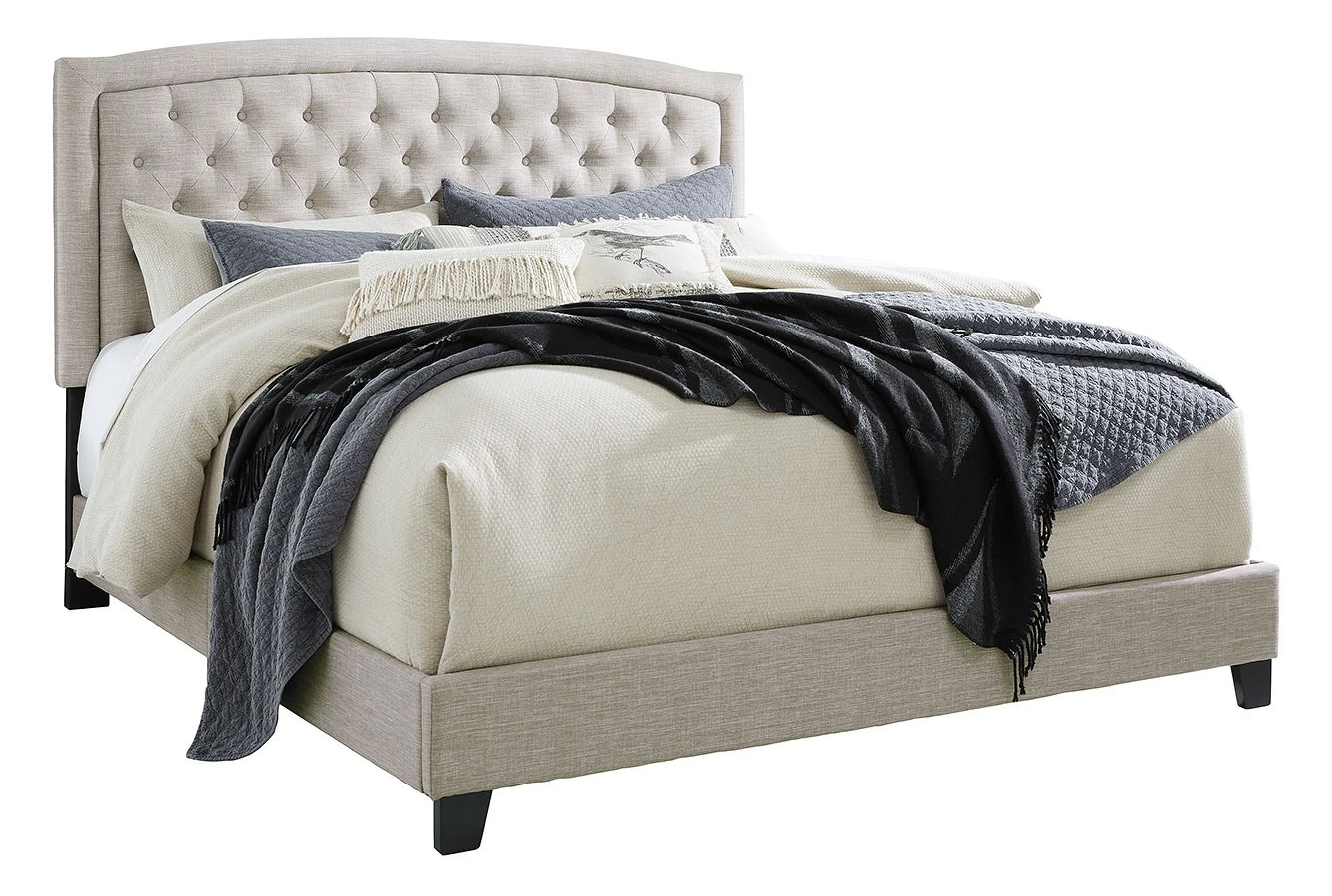 - OverviewSet the scene for a heavenly bedroom retreat – at a down-to-earth price – with this beautifully upholstered Jerary bed by Signature Design. Light gray upholstery gracing the arched tufted headboard sports a textural weave that feels fresh and now. Footboard and rails are also dressed in cool gray tones. Mattress and foundation/box spring sold separately.