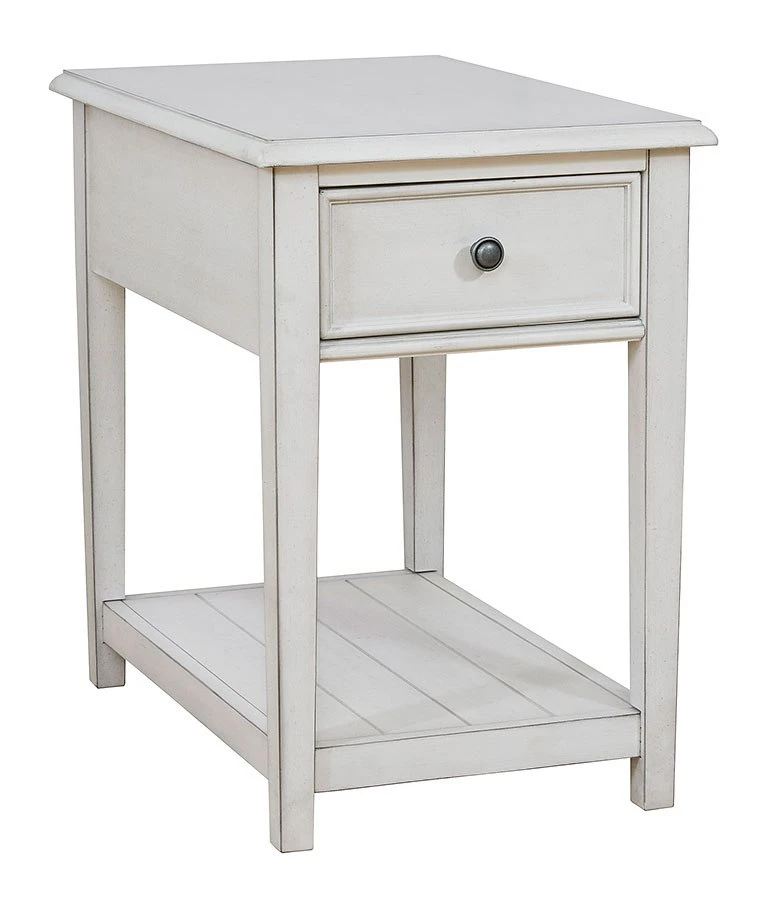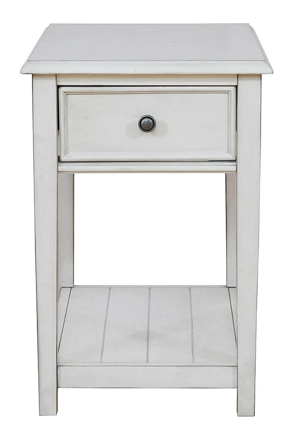 Drawer storage in end table features a round metal knob with a dark gray pewter color - Series NoT937