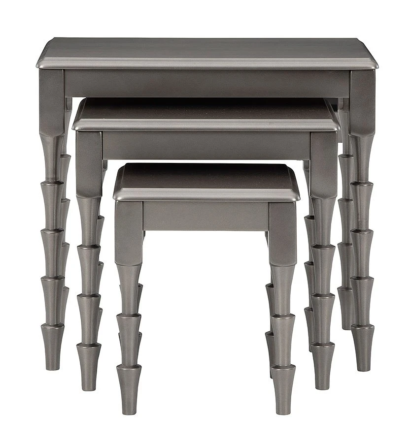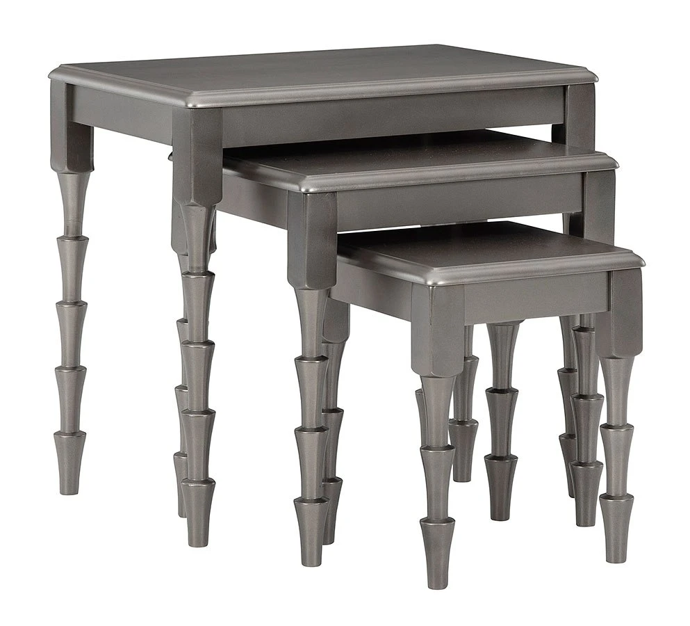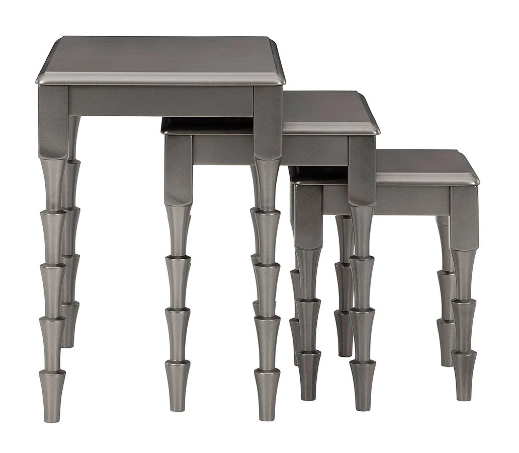 - OverviewAdd a uniquely chic touch to your nest with this Larkendale 3-piece nesting table set. Finished in a metallic gray for a hint of sheen, this fabulous threesome takes contemporary form and functionality to another level.