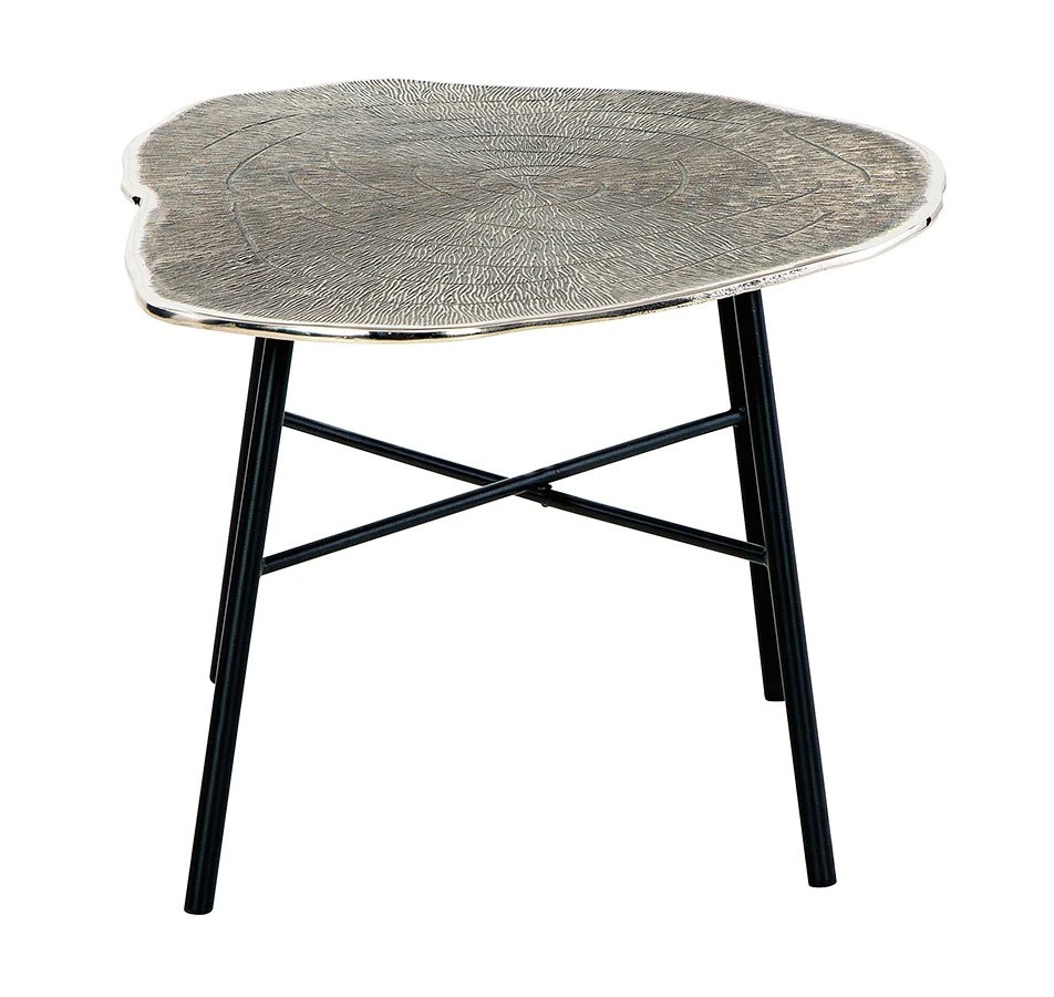 - OverviewRich with curated character, this Laverford coffee table by Signature Design puts a contemporary spin on natural beauty. Its irregular grooved top is refined with the glamour of a gleaming chrome-tone finish. A black base completes this cool piece.