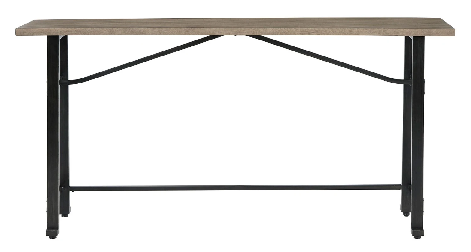 - OverviewDelight in the effortless two-tone look of this Lesterton long counter table by Signature Design. Dark iron-tone metal and distressed brown wood pair for a rustic look with modern sensibility. This charming piece is great for small spaces, easily tucking against a wall or the back of a sofa.