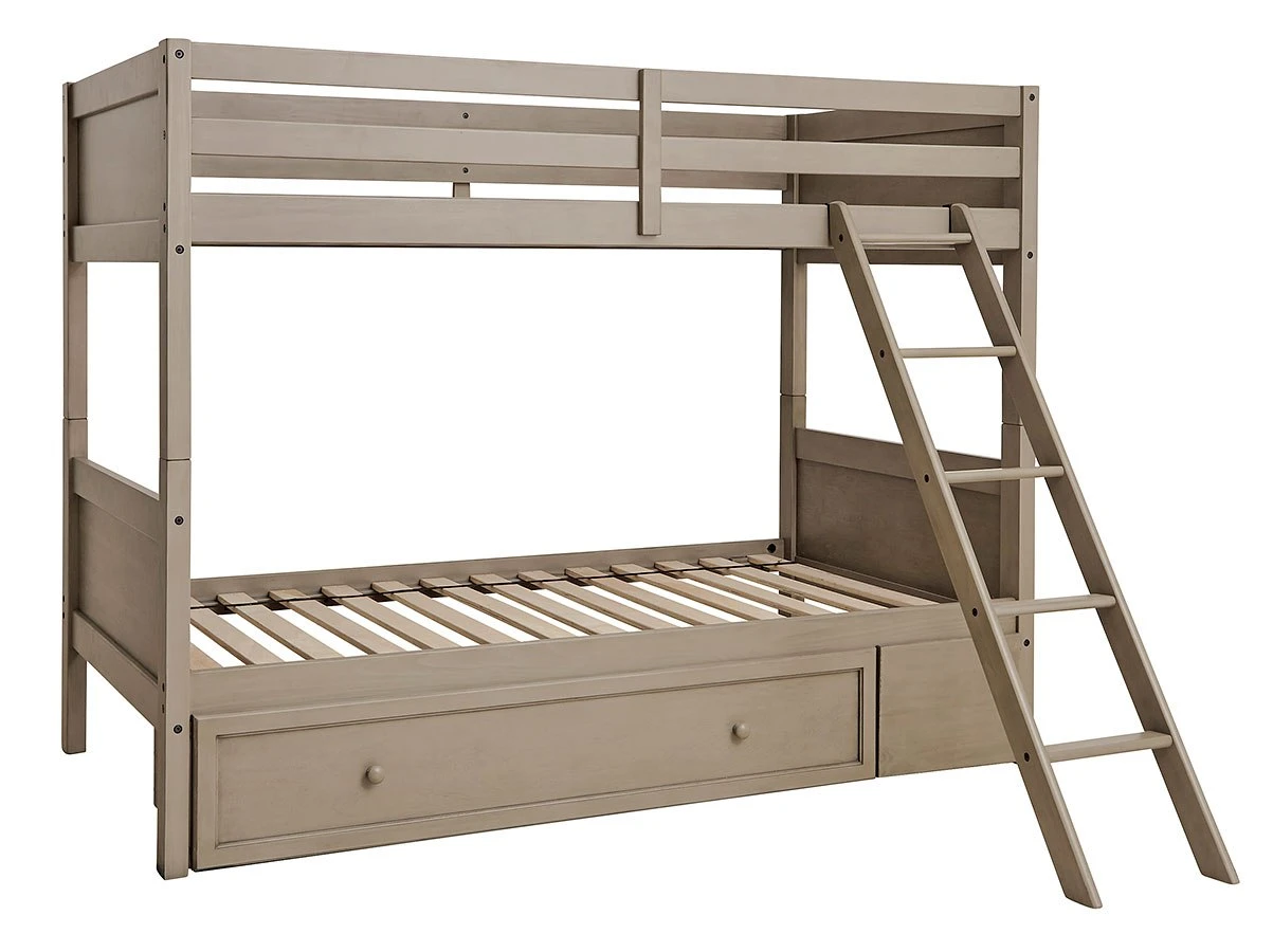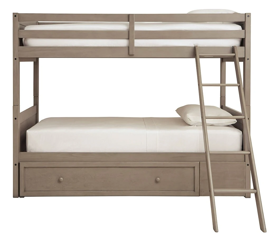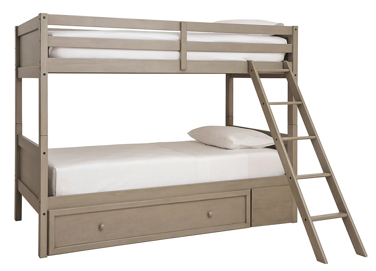 - OverviewDouble the space means twice the fun, and that’s what they’ll enjoy with this Lettner Bunk Bed by Signature Design. Forever classic design details – under bed storage, a sturdy ladder and safety rails – are paired with a burnished gray finish that elevates the look with modern sensibility.