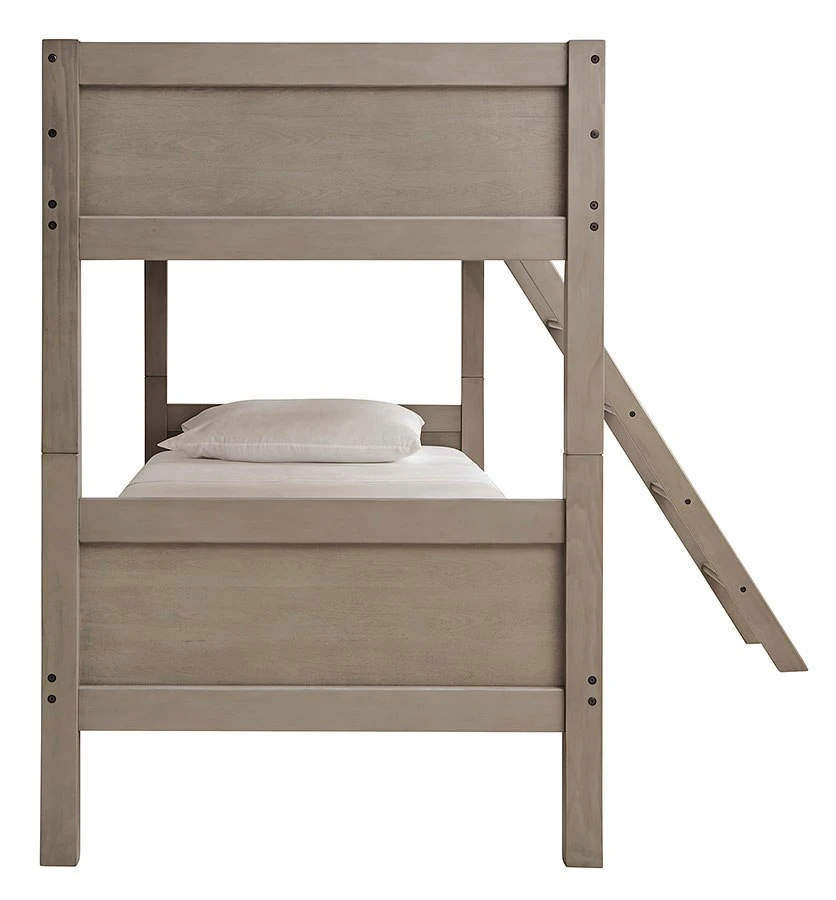- OverviewDouble the space means twice the fun, and that’s what they’ll enjoy with this Lettner Bunk Bed by Signature Design. Forever classic design details – optional under bed storage, a sturdy ladder and safety rails – are paired with a burnished gray finish that elevates the look with modern sensibility.
