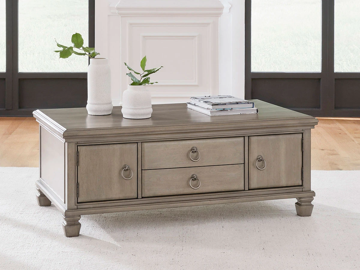 - OverviewTraditional design motifs, redefined for the trends of today. This Lexorne Occasional Table Set by Signature Design impresses with its overall transitional take on style. You’ll find that the light gray finish encourages an attitude of laid-back luxury. Complete with chic trunk-style construction, the cocktail table reigns over your living room with an air of casual elegance.