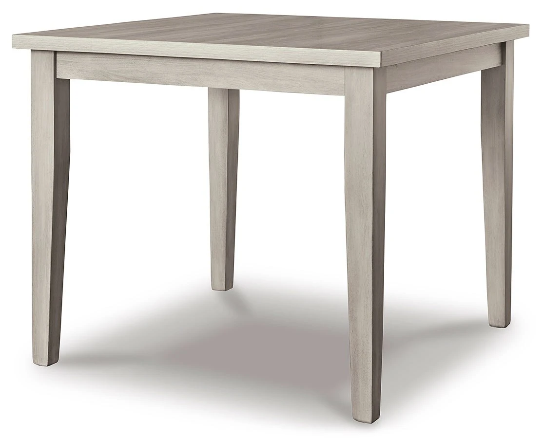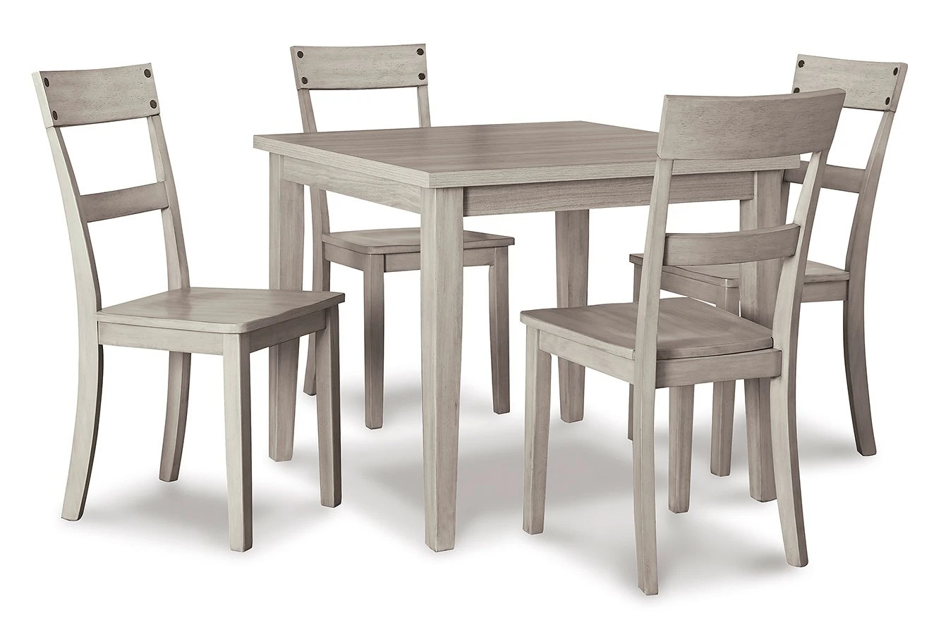 - OverviewTight budget? Tight space? You’re all set with this Loratti 5-Piece Dining Room Set by Signature Design. The square table is the perfect marriage of form and function, combining the look and feel of barn wood with a durable top made of heat- and scratch-resistant melamine. Four dining chairs, made with a gray wash finish and nail head trim, serve up casual coolness. Designed with today’s lifestyle in mind, the set’s clean-lined look is decidedly modern. What a delicious choice for a casual contemporary dining room upgrade.