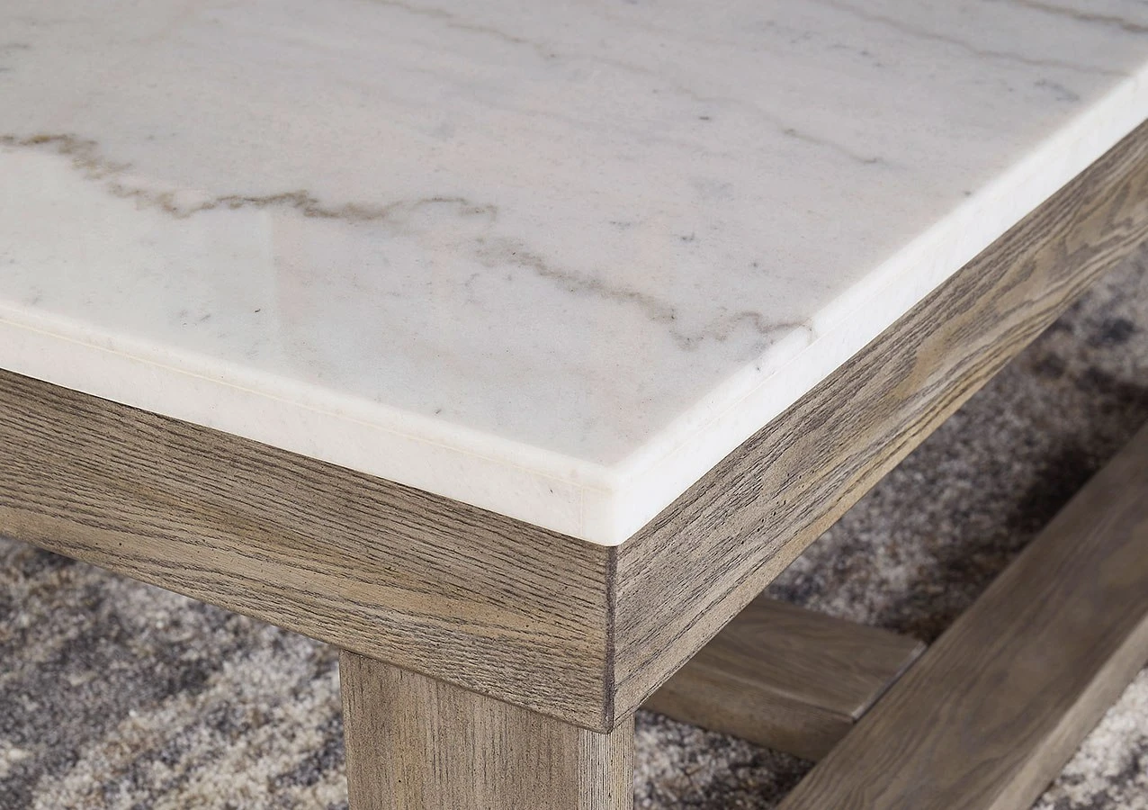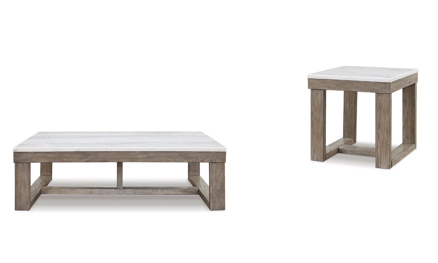 - OverviewThis Loyaska Occasional Table Set by Signature Design is simple in design but big on style. Finished with a trend-right grayish brown wood tone, its bold, blocky profile and natural marble top are timeless classic choices that work so well with large sectional family room settings. Adding to its beauty, the marble top’s color variations, fissures, mineral deposits and veining are naturally formed and are not defects.