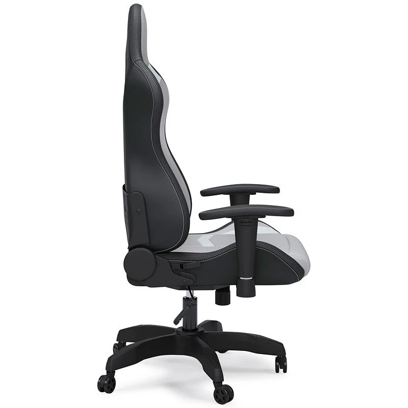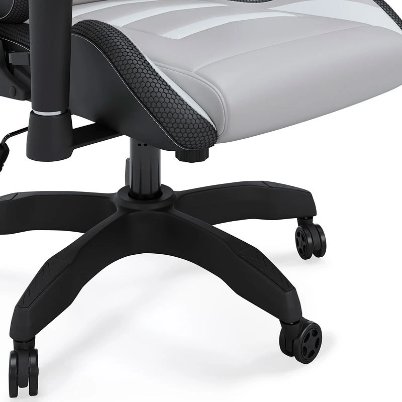 - OverviewTech this out: a swivel office chair that’s as cool as it is comfortable. The ultimate choice among gamers, this Lynxtyn swivel office chair by Signature Design is hard to beat. Quality crafted with a sturdy steel frame, this swivel office chair with comfy contoured seat and cutting-edge design is upholstered in a durable faux leather in white and gray. Cleverly integrated into the chair: powered LED lighting to enhance the gaming experience. Choose from six different colors or stream a mix of color using the remote control. With a swivel base, smooth-gliding casters and adjustable seat height/tilt feature, this office chair with fully reclining backrest has serious game.